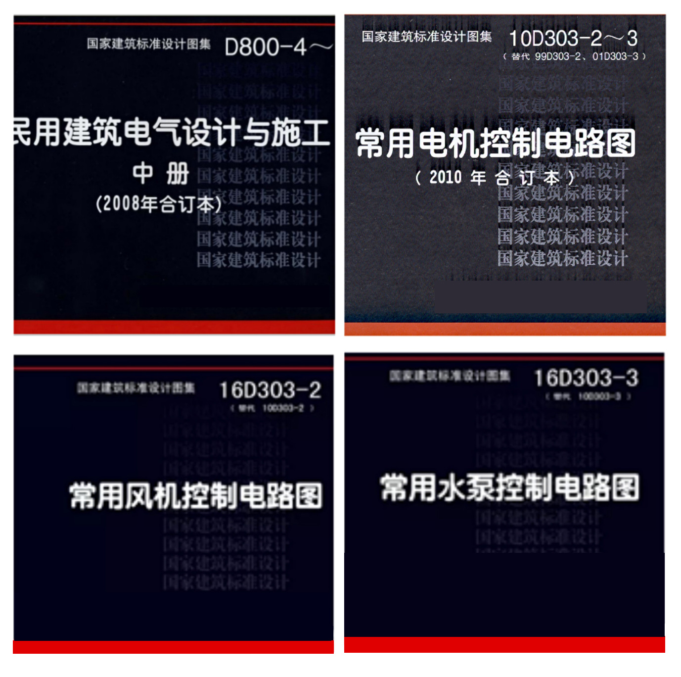 該圖集的風(fēng)機(jī)電路圖部分根據(jù)風(fēng)機(jī)、閥門不同情況和使用要求,設(shè)計(jì)了32種不同類型的控制電路圖,其中消防風(fēng)機(jī)類14種、非消防風(fēng)機(jī)類18種;水泵電路圖部分包含了消防泵、生活給排水泵、熱水循環(huán)泵、穩(wěn)壓泵、排水泵和雨水提升泵6大類36種不同類型的控制電路圖,其中消防水泵類10種,非消防泵類19種。